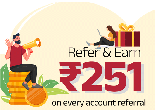 Earn up to Rs. 251 when you refer your friends and family to open a trading account & they start transacting with us!